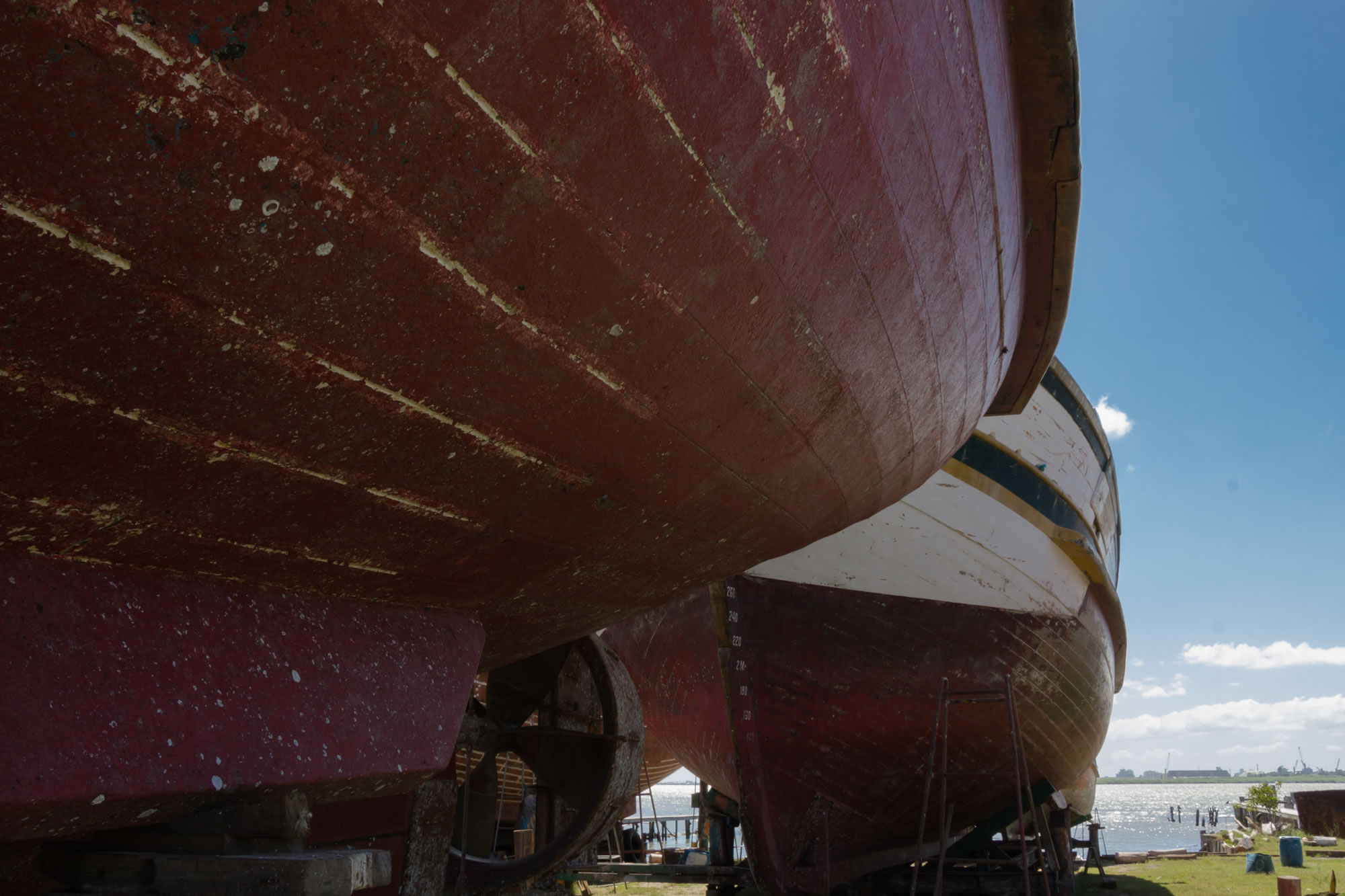 São José do Norte é paraíso para quem gosta de fotografar. Nesta viagem bastou um curto passeio para nossos olhos se encantarem com os barcos em repouso num estaleiro. E que sensação é a de ficar tão próximo destas imponentes embarcações, podendo ver de perto o que normalmente está submerso. Andamos um pouco mais em direção ao extremo sul da cidade e mais um recanto com igreja, casa colonial e uma pequena comunidade. Um pouco mais afastado, no distrito do Estreito, encontramos a água doce de um extenso riacho indo em direção ao mar, ladeado por eucaliptos e sombra generosa.